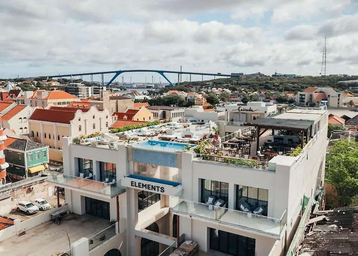 Το Elements Hotel & Shops Curacao Βίλλεμσταντ 4 αστέρων που απέχει 5 λεπτά με τα πόδια από την παραθαλάσσια συνοικία Handelskade, προσφέρει 43 δωμάτια με θέα στην πόλη. Έχοντας κεντρική θέση, 350 μέτρα από την Πλωτή Γέφυρα της Βασίλισσας Έμμα, το ξενοδοχείο διαθέτει πισίνα υπερχείλισης.